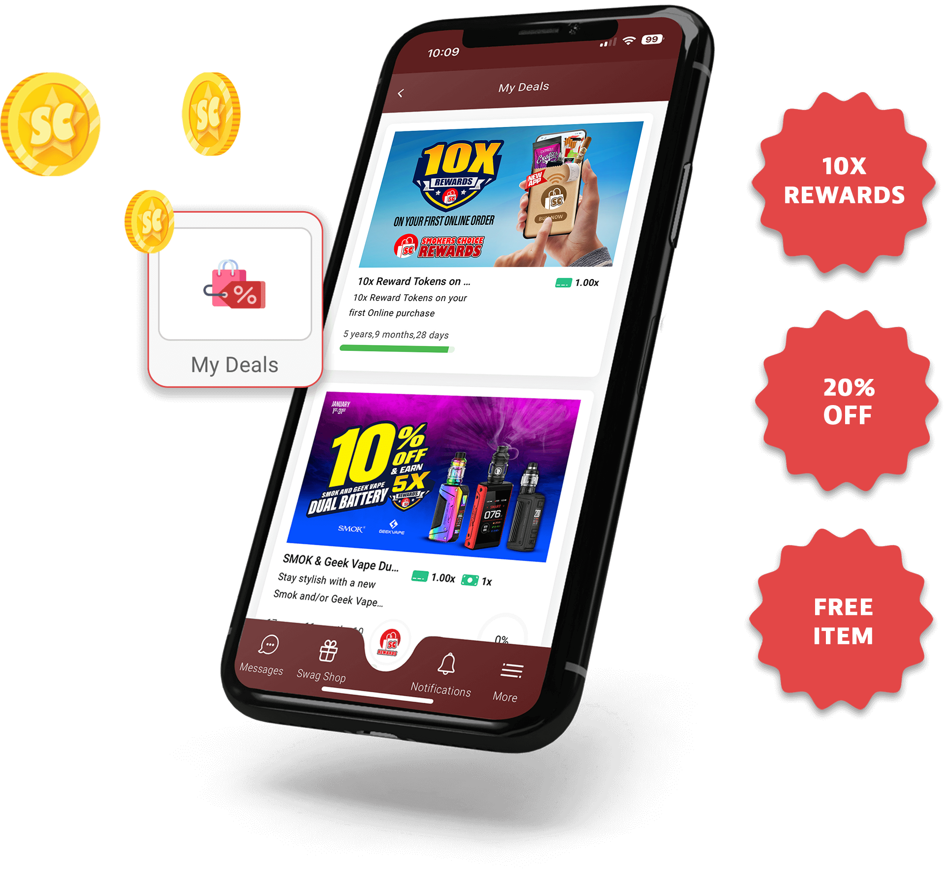 JOIN SMOKERS CHOICE REWARDS FOR EXCLUSIVE DISCOUNTS, COUPONS, & TOKENS.